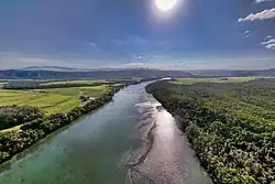 The catchment area of the river occupies an 2,107 square kilometres (814 sq mi) of which an area of 33 square kilometres (13 sq mi) is composed of estuarine wetlands.[4]