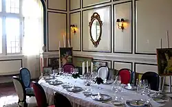 In 1943, under the Vichy governor general of Indochina, Admiral Decoux, the façade was altered, and changed to a starker exterior. This was 'almost certainly inspired by architect Paul Vesseyre's two other 'Palaces' in Dalat, Bao Dai's and the governor generals, built in 1934 and 1937 respectively, in a style more of art deco or even Bauhaus than of the fin-de-siècle spa style.' [6] Decoux did not like what he regarded as out-dated ornamentation and was part of a movement at this time to simplify complex lines and to cut out rococo elements. Other examples of Decoux's attitude were the treatment he visited upon the palace of the governor general of Cochinchina in Saigon, removing the two caryatids, and the celebrated Saigon theatre, whose statues and bas-reliefs were destroyed on Decoux's orders.[7]
