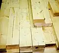 The wood from which the figures are carved comes from the slow-growing pine forests around Lake Siljan. The wood is ideal for carpentry and carving. The trees to be made into horses are marked out while still standing in the forest. Only the best timber will be selected for carving into horses. The trees are felled and sawed into pieces of a suitable size for the blanks that will eventually be made into Dala horses.