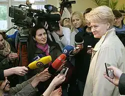 - ^ "Šampanas iššautas: D.Grybauskaitė be didesnės konkurencijos išrinkta Lietuvos prezidente" (in Lithuanian). Lietuvos rytas. 20 May 2009. Archived from the original on 21 May 2009. Retrieved 20 May 2009.