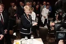Dalia Grybauskaitė (Lithuanian pronunciation: [dɐˈlʲɛ ɡʲrʲiːbɐʊsˈkɐ̂ˑɪtʲeː]; born 1 March 1956) is a Lithuanian politician who served as the eighth president of Lithuania from 2009 to 2019. She is the first and so far only woman to hold the position and in 2014 she became the first President of Lithuania to be reelected for a second consecutive term.[1][2]