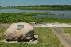 On October 23, 1858, Abraham Lincoln stopped in Dallas City, Illinois to deliver a speech. Many local men were instrumental in persuading Lincoln to visit Dallas in 1858, including George M. Ames, H.F. Black, and Ben Mendenhall. According to the Dallas City Review newspaper, several efforts were made by Democrats to tear down the platform that had been erected for Lincoln to use during his speech. Republican forces, however, were present and did not allow it to happen. A monument to represent Lincoln's visit sits on the Mississippi River on the Riverfront Park at the end of Oak St.[7]