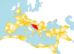 In antiquity, the Roman province of Dalmatia was much larger than the present-day region of Dalmatia, stretching from Istria in the north to modern-day Albania in the south.[4] Dalmatia signified not only a geographical unit, but was an entity based on common culture and settlement types, an eastern Adriatic coastal belt with a Mediterranean climate, sclerophyllous vegetation of the Illyrian province, and a carbonate platform.
