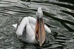 Dalmatian pelican using his pouch to hold fish weighing more than 1 kg (2.2 lb).[20][41]