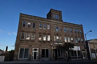 Facing the road on the ground floor are two storefronts that originally housed a bank and a drugstore.[3] The upper two floors were used for offices as well as apartments for visiting performers.[3] At the rear of the building was a gable-roofed auditorium, designed in the Beaux Arts style, and a plain five-story equipment tower serving the stage. The auditorium section of the building collapsed in 1982, however, and has been razed.[4]