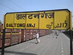 Daltonganj railway station, station code DTO, is a railway station serving the cities of Medininagar and Palamu in Palamu district of the Indian state of Jharkhand. Daltonganj station is also the headquarters of the Palamu division of the East Central Railway Zone of the Indian Railways. It is also a major station on the CIC route and will be a primary hub on the Ranchi–New Delhi route after the opening of the Ranchi–Tori rail line. Major trains such as the Ranchi Rajdhani Express, Muri Express, Sambalpur–Varanasi Express, Palamu Express, Ranchi–Varanasi Express, Ranchi–Ajmer Garib Nawaz Express, Triveni Express, Ahmedabad Kolkata Express, Jharkhand Swarna Jayanti Express, Jharkhand Sampark Kranti Express, and Shaktipunj Express also stop here.