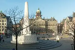 ![]() Dam Square with the Royal Palace (center) and the back of the National Monument (left) in 2024 | |