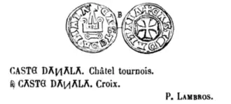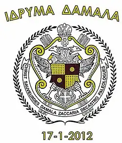 The House of Zaccaria de Damalà—now Damalas— (Italian: Damalà, Greek: Δαμαλάς) is a formerly ruling family of Genoese origin, established in the 14th century on the Greek island of Chios, due to the marriage of Admiral Benedetto I Zaccaria with a sister of Byzantine Emperor Michael VIII Palaiologos;[2] it later received the hereditary royal dignity of King and Despot of Asia Minor by grant of the Latin Emperor in 1325, and ultimately produced the last ruling dynasty of the Principality of Achaea in the 15th century.[3]