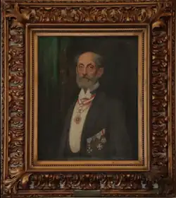 The head of the family at that time was Ambrosios Ioannou Damalas, eldest son of the slain Ioannis Zanni. Ambrosios became the most important merchant in the flourishing Syros and acquired great wealth, thereafter leading the establishment of the Hellenic Steamship Company. In the cosmopolitan Vaporia district by the port of Ermoupoli, he had built an extremely ornate palace in the neoclassical style, rich with frescoes by Italian artist Giuseppe Tami. Some of the land of this estate was ceded for the expansion of Othonos Square, and it was there that the family was recognized by the first King of modern Greece, as King Otto I and Queen Amalia were hosted at the palace; first in 1846 and again in 1850.[75][76][77]