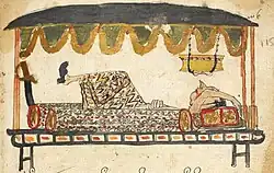 The Damarwulan legend is associated with the Majapahit court at the time of the queen Suhita, at which time there was a war with Blambangan. However, the names of the characters Damar Wulan ("radiance of the moon") and Menak Jingga ("red knight") suggest that they may incorporate elements of an older sun-moon myth. It is uncertain when the story (MSS.Jav.89) was donated to the Library in 1815. It is thought to date to the late 18th century and "begins with the accession of the daughter of Brawijaya (Kusuma Kancana Wungu) to the throne of Majapahit."[1]