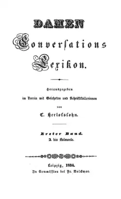 - ^ Vorrede. In Carl Herloßsohn (ed.): Damen Conversations Lexikon. Vol 1. Leipzig 1834, S. III3 (zeno.org)