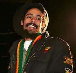 Marley is the youngest son of legendary reggae singer Bob Marley.[2] He is the only child born to Marley and Cindy Breakspeare, a Jamaican jazz singer and crowned Miss World 1976. Like several of Bob's children, Damian was born out of wedlock and outside of Bob's marriage to singer Rita Marley.[3] After seeing the film Damien - Omen II, which is about the coming of the Antichrist, one of Bob's last requests in Germany was to have Damian's name changed. "Damien being a devil...It was inappropriate for him as a Rastafarian to have a child with that name," Bob said and Damian's name was later changed.[4]