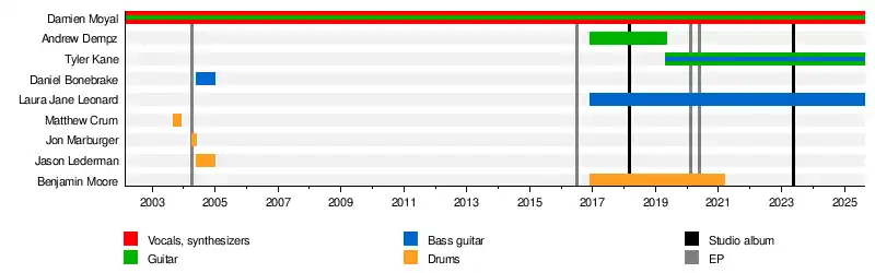 - Damien Moyal – vocals, acoustic guitar, electric guitar, synthesizers, drum programming (2002–present)