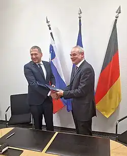 From 14 September 2018 to 13 March 2020, he served as the National Security Advisor to Slovenian Prime Minister Marjan Šarec.[7] During his tenure, he was also appointed as chief arbitration implementer between Slovenia and Croatia by the Government of Slovenia.[8][9]
