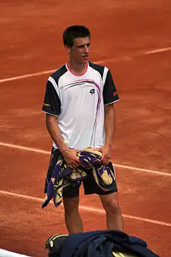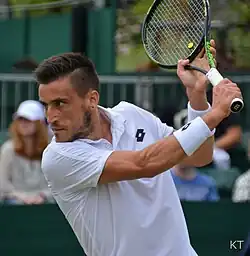 Damir Džumhur (Bosnian pronunciation: [dǎːmir dʒûmxur] JOOM-hoor;[2] born 20 May 1992) is a Bosnian professional tennis player. His career-best singles ATP ranking of World No. 23, achieved on 2 July 2018, makes him the highest-ranked tennis player from Bosnia and Herzegovina.[3] He is currently Bosnia and Herzegovina's No. 1 player.[4]