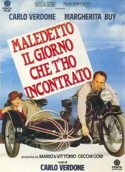 Damned the Day I Met You ( Italian: Maledetto il giorno che t'ho incontrato) is a 1992 Italian romantic comedy film directed by Carlo Verdone.[2][3][4] The film won five David di Donatello Awards, for best screenplay, best actor, best cinematography, best editing and best supporting actress (Elisabetta Pozzi).[5] For her performance Margherita Buy won the Ciak d'oro for best actress.[5]