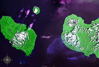 ![]() Dampier Strait seen from space. Also visible are Umboi Island (west), New Britain (east) and Sakar Island (north). (false colors) | |