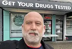 ![]() Dana Larsen in front of the Get Your Drugs Tested centre, 2021 | |