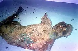 It was recovered from the sea floor off Sicily in 1998, and is now on display in the church of Sant'Egidio, Mazara del Vallo, Sicily. Though some have dated it to the 4th century BCE and said it was an original work by Praxiteles or a faithful copy,[2] it is more securely dated either to the Hellenistic period of the 3rd and 2nd centuries BCE, or possibly to the Roman "Atticising" phase in the early 2nd century CE.