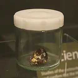 The Danebury meteorite is an H5 ordinary chondrite meteorite found in 1974 during the excavation of a grain pit at the hillfort.[40] Originally classified as a lump of slag, it was identified as a meteorite about a decade later.[40] It was found in a grain pit between two layers of infill with no particular evidence of it having been placed there, so it may have fallen directly into the pit.[40] Carbon dating produced a date of 748–230 BC.[note 1][40]