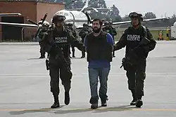 On September 18, 2012, Barrera was arrested by Venezuelan security forces in San Cristobal, a town ten miles from the Colombian border. The arrest was announced by Colombian President Juan Manuel Santos live on national television. According to Santos, Barrera was "the last of the great capos."[8] According to Colombia's defense minister, Juan Carlos Pinzón, and the country's national police chief, the arrest was the result of a months-long cooperation between authorities from Colombia and Venezuela, U.K. intelligence agency MI6 and U.S. intelligence agency CIA.[9] Additional investigational support was provided by U.S. Immigration and Customs Enforcement, U.S. Drug Enforcement Administration and U.S. Treasury Office of Foreign Asset Control.[10]