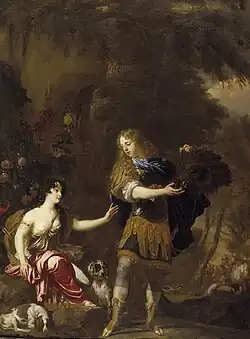 From 1672 to 1688, he was back in The Hague and was one of the 48 signers of the founding charter of the Confrerie Pictura in the Hague, and painted one of the four corner pieces of the ceiling of the "Boterwaag" where the guild members met.[2] The other corners were painted by Theodor van der Schuer, Augustinus Terwesten, and Robbert Duval. Later, he joined with them to create the Royal Academy of Art.[2]
