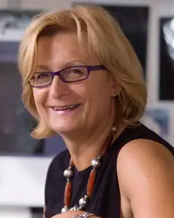 Daniela Bargellini Rhodes FRS[1] (born 1946) is an Italian structural and molecular biologist. She was a senior scientist at the Laboratory of Molecular Biology in Cambridge, England,[4] where she worked, and later studied for her PhD[5] under the supervision of Nobel laureate Aaron Klug. Continuing her work under the tutelage of Aaron Klug at Cambridge, she was appointed group leader in 1983, obtained tenure in 1987 and was promoted to senior scientist in 1994 (equivalent to full professor). Subsequently, she served as director of studies between 2003 and 2006. She has also been visiting professor at both "La Sapienza" in Rome, Italy and the Rockefeller University in NY, USA.[6][7][8][9][10]