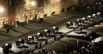 In 1998 the performance of the Two Symphonies for 21 pianos at the Uffizi Courtyard.[6]