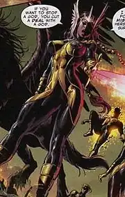 - ^ a b Gillen, Kieron (w), Henrichon, Niko (a), Henrichon, Niko (col), Caramagna, Joe (let), Lowe, Nick, Ketchum, Daniel (ed). "Hel's Valkyrie" New Mutants, vol. 3, no. 11 (May 2010). New York, NY: Marvel Comics, ISSN 0747-4601.
