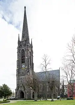 The Dankeskirche (Church of Thanks) is the central Protestant church in Bad Nauheim. It was planned from 1893, located near the spa facilities. Built in Gothic-revival style to a design by Ludwig Hofmann, it was opened in 1906. The church was made with Londorf basalt, a type of volcanic rock.[1]