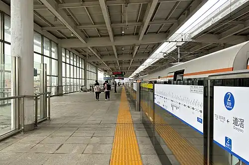 Daojiao railway station (Chinese: 道滘站; pinyin: Dàojiào Zhàn; Jyutping: Dou6gaau3 Zaam6) is a railway station in Daojiao, Dongguan, Guangdong, China. It opened on 28 December 2017, and was the western terminus of the Guangzhou–Huizhou intercity railway before Dongguan West opened on 15 December 2019.[1]