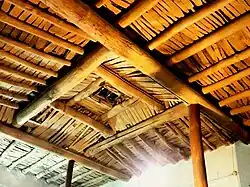 Darbazi (Georgian: დარბაზი; from Persian: darvāze, "gate") is a term used in Georgia to describe a chamber with a distinctive "swallow dome"-type roof structure found in the traditional domestic architecture of Asia Minor and the South Caucasus. The central feature is a pyramidal vault (gvirgvini), supported on pillars and constructed of a stepped series of hewn logs and beams, with a central opening at the top which serves as a window and smoke flue. The Roman authority Vitruvius (1st century BC) includes in his De architectura a description of a Colchian dwelling, the ancient prototype of a darbazi.[1] Such lantern roofs are called harazashen or glkhatun in Armenia, kirlangiç kubbe or kirlangiç ortu in Turkey, and karadam in Azerbaijan.[2][3]
