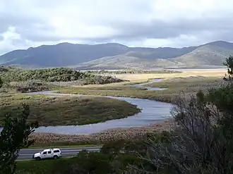 Darby River is a locality in Gippsland in southeastern Victoria, Australia. Located within Wilson's Promontory National Park, it was the location of the original park entrance, ranger station and accommodation centre from 1909 until the Second World War. Often referred to just as The Darby, it was the location of the National Park Committee of Management Rooms from about 1909, a Ranger's cottage from 1913, and the 'Chalet' for tourist accommodation from 1923. The Chalet began as a small 6 room building and expanded to more than 24 accommodation rooms, kitchen, dining hall, bathrooms and the like.[2] During World War Two the area was the site of the Headquarters Camp of the No 7 Commando Training Centre.[3] At this time large numbers of huts and tents were erected and the Chalet was taken over for the Officers Mess. Following the war most of the buildings were removed or fell into disrepair and were demolished. The Ranger's House was moved to Tidal River.