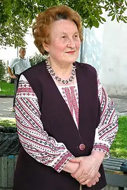 Daria Dmytrivna Chubata (Ukrainian: Чубата Дарія Дмитрівна; born July 27, 1940) is a Ukrainian physician, author, and social activist. She became a member of the National Union of Journalists of Ukraine in 2003, and twice served as a member of the Ternopil Oblast Council (1998-2002, 2002-2006). In 1980, she was awarded the Distinguished Healthcare Worker of the USSR.