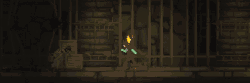 Teleportation Altars can be found around the game's map. Only one altar can be active at a time.[2] In Filthblood, the player can use a one-way portal to return to the last activated altar.[2] If the Templar dies, she loses her equipment, and will respawn in the Filthblood Shelter with low health and armor.[1][2] Some weapons and armor, like ones dropped by bosses or received as a quest reward, are unlocked permanently. Players can choose to start with one of these from the game's hub. No accessories or runes are retained upon death.[1] In the shelter, the player can use their experience points for upgrades, accept side quests, and collect gear from a blacksmith.[2] The Filthblood Shelter also contains four doors that lead to each of the game's four worlds.[2]