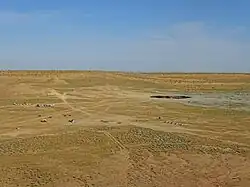 In post-Soviet Turkmenistan, the crater has become a major tourist attraction,[7] perhaps aided by the declaration of the region as a natural reserve in 2013.[8] A crude road without signage runs out to the crater, and yurts have been set up nearby.[8][11] In 2018, the gas crater was used as an overnight stop in the Amul-Hazar automobile rally.[14] In 2019, Berdimuhamedow appeared on state television doing doughnut stunts around the crater to disprove rumors of his death.[15]
