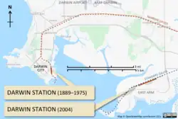 ![]() Darwin's railway station, in 2007 | |||||||||||