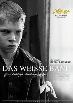 The White Ribbon (German: Das weiße Band - Eine deutsche Kindergeschichte[a]) is a 2009 German-language mystery drama film, written and directed by Michael Haneke. Released in black-and-white, the film offers a dark depiction of society and family in a northern German village just before World War I. According to Haneke, The White Ribbon "is about the roots of evil. Whether it's religious or political terrorism, it's the same thing."[4][5]