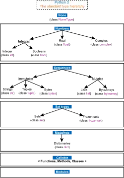 In computer science and computer programming, a data type (or simply type) is a collection or grouping of data values, usually specified by a set of possible values, a set of allowed operations on these values, and/or a representation of these values as machine types.[1] A data type specification in a program constrains the possible values that an expression, such as a variable or a function call, might take. On literal data, it tells the compiler or interpreter how the programmer intends to use the data. Most programming languages support basic data types of integer numbers (of varying sizes), floating-point numbers (which approximate real numbers), characters and Booleans.[2][3]