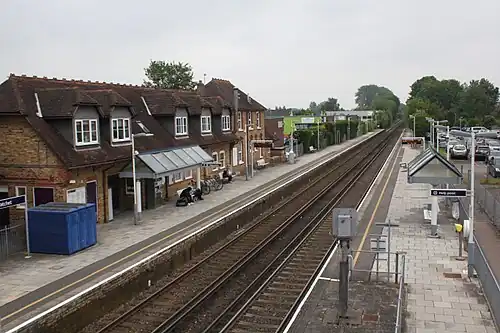 The station has two side platforms linked by a pedestrian footbridge, and the principal station buildings are to be found on the London bound platform. The station has a central location within Datchet village, and two level crossings cross the line immediately to the west of the station. The presence of these crossings, which carry both road routes from the village to the nearby town of Windsor, can cause traffic delays in the village.