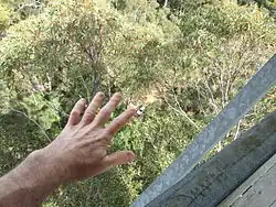 The Dave Evans Bicentennial Tree, a 75 m (246 ft)[1] tall karri tree, was pegged for climbing to celebrate Australia's bicentenary in 1988.[2] It is in Warren National Park in southwestern Australia.[3] Although it has been used as a fire lookout, it is used mainly as a tourist attraction.[4] The lookout platform was reached by climbing 165 metal spikes hammered into the trunk.[2]