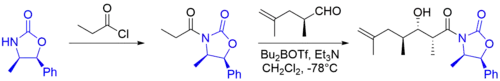 - ^ "Diastereoselective Aldol Condensation Using a Chiral Oxazolidinone Auxiliary: (2S,3S)-3-Hydroxy-3-Phenyl-2-Methylpropanoic Acid". Organic Syntheses. 68: 83. 1990. doi:10.15227/orgsyn.068.0083.