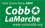 - ^ a b c "News Release: Green Party Congratulates and Welcomes Presidential Nominee David Cobb, Vice Presidential Nominee Pat LaMarche". Green Party of the United States. June 26, 2004. Archived from the original on November 2, 2010. Retrieved June 23, 2004.