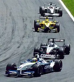McLaren introduced a revised version of their car the McLaren MP4-19B in France.[63] The change of car improved reliability and results, helping Coulthard to achieve sixth place during the Grand Prix, and secured further points in four more races over the course of the season,[23] only suffering from one further non-finish from a collision with Ferrari driver Rubens Barrichello in Japan.[64] Overall, Coulthard finished tenth in the Drivers' Championship, equal on points with Ralf Schumacher,[65] and did not score any podium finishes during the season.[23]