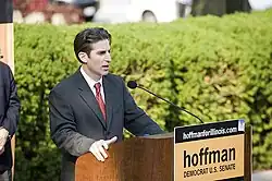 In 2009, Hoffman announced his intentions to run for the United States Senate seat held by Roland Burris after Burris, who was appointed by then Governor Rod Blagojevich to fill the seat vacated by Barack Obama following Obama's election as President of the United States, announced he would not seek election to a full term. He was endorsed by every major newspaper in the state with the Chicago Tribune calling him “an incorruptible man who tells truth to power.".[13] On February 2, 2010, Hoffman was narrowly defeated in the Democratic primary by state treasurer Alexi Giannoulias.