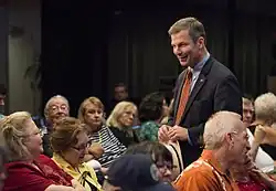 Simpson did not seek re-election to the House in 2016. Instead he ran, against Conservative Bryan Hughes, a Mineola lawyer, for the District 1 seat in the Texas State Senate seat held since 2004 by Moderate Republican Kevin Eltife, a former mayor of Tyler, who did not seek reelection. Eliminated in the March 1 primary was the two-star United States Army General James K. "Red" Brown of Lindale, and businessman and lawyer Mike Lee. However, both Hughes and Simpson moved on to a runoff that was held on May 24, 2016.[19] In the contest against Simpson, Hughes carried the backing of Lieutenant Governor Dan Patrick, the presiding officer of the state Senate. Hughes won the runoff in a landslide.[20]