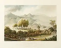 Stewart was born at Drumcharry House in the Parish of Fortingall or at Kynachan in the Parish of Dull on 12 April 1772, the second son of Robert Stewart of Garth, Perthshire, and was descended from James Stewart (grandson of Robert II) who built Garth Castle, north-west of Aberfeldy, as a home for the chieftain of Clan Stewart of Atholl at the end of the fourteenth century. His mother was Janet Stewart of Kynachan, who died when he was 13.[6] In July 1822, after publishing his book, he succeeded to the heavily indebted estates of Garth, Drumcharry, Kynachan and Inchgarth by the death of his elder brother William.[7] When George IV visited Edinburgh in August 1822, Stewart helped Sir Walter Scott in the reception arrangements, headed the Celtic club in the procession, adjusted the royal plaid for the levée, and pronounced the king ‘a very pretty man’ (Lockhart). He was promoted to major-general on 27 May 1825, and in 1829 he was appointed governor of Saint Lucia. On 18 December 1829 he died of fever on St Lucia.[8]