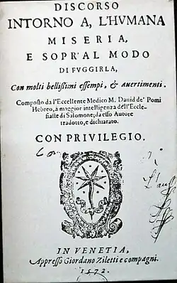 - ^ a b Preschel, Tovia (5 June 2024). "David de Pomis, Italian Rabbi, Physician Philosopher and Philologist". Retrieved 8 September 2024.