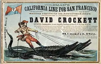 Crockett became famous during his lifetime for larger-than-life exploits popularized by stage plays and almanacs. After his death, he continued to be credited with acts of mythical proportion. These led in the 20th century to television and film portrayals, and he became one of the best-known American folk heroes.[4][5]