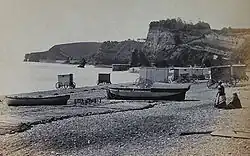 In 1830, Isambard Kingdom Brunel designed an atmospheric railway, which operated on a pneumatic principle,[12] using a 15-inch iron tube. One of the pumping stations was in this town. The line ran right along the seafront, but Brunel ensured that the line was carried across the mouth of the stream on a small granite viaduct, leaving access to the beach.[7]